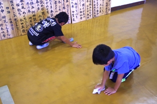 今学期からぞうきんがけの方法が変わりました。後ろ向きにきっちりとぞうきんを掛けながら下がります。