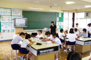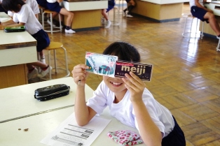 5年生が受けた、明治の出前授業は家庭科室で行われました。 チョコの説明と共に、実際にカカオの分量の違うチョコを食べ比べて どのように味が違うのかを体験しました。 たとえば「にがさ」や「あまさ」の度合いや、食感についても話しあっていました。 また、カカオからチョコレートになりみんなの口に届くまでには、 沢山の人が関わっている事も教えてもらいましたね。 明治様、どうも有り難うございました!