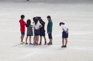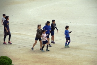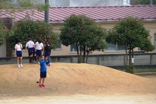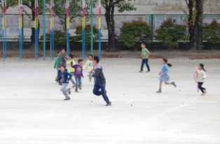 ひんやりと冬の訪れを感じる日でしたが、子ども達は元気に走り回っていました。 先生といっしょに校庭を縦横無尽に駆けていましたね。