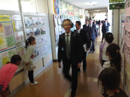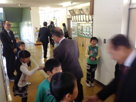 今回の視察では2年生の児童がお出迎えを行いました。