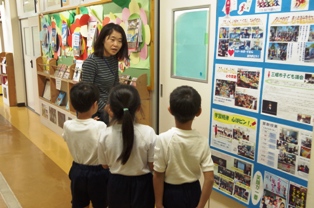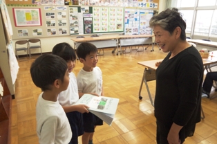 過日にエプロンシアターや朗読でお世話になった山﨑さんへ 1年生がお礼の感想と手紙を手渡していました。 山﨑さん有り難うございました!