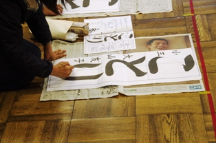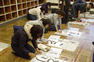 冬になると、学校では書き初めの授業も始まります。 それにむけて、校内でも随一の安藤先生(読書俳句を書いてくださっています)を講師として職員の毛筆実技研修を行いました。