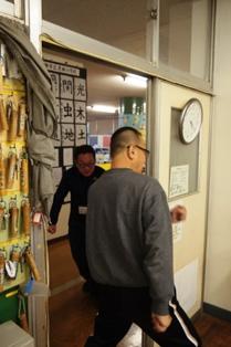 昨今の学校では何が起こるか分かりません。 時には不審者が校内に侵入する場合もあります。 そこで、放課後に全職員で「不審者が侵入してきたら」を想定して、訓練を行いました。 侵入者を発見してから、児童を避難させて取り押さえるまでの流れの確認をしました。 更に、警察から指導を受けた内容を全職員で確認しながら取り押さえ方、動き方を実際にやってみました。 今回のように学校では様々なケースを想定して訓練・研修を行っています。 ご家庭でも、「もし○○がおきたら」を想定して防犯などのお話しをしていただければと思います。