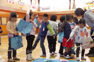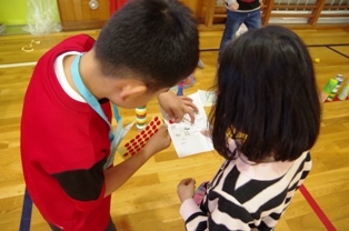 今日は「遊びランド」が体育館にて開園されました。 遊びランドは、体育館に2年生が考えて一から作ったゲームがたくさんある 1年生限定のランドです。 「魚釣り」や「わなげ」「たからさがし」など、どれも趣向を凝らしたコーナーばかりでした。 入場した1年生はどこから回るかで大盛り上がりでした。 もちろんゲームでも大はしゃぎ! コーナーをクリアすると、シールと折り紙の素敵な景品がもらえます。 運営側の2年生も一緒に楽しんだ様子でしたが、それ以上にお兄さんお姉さんとして、1年生に優しく面倒を見ていました。とっても頼もしいですね。 1年生、2年生のみんなが楽しく盛り上がることが出来ました! 2年生のみなさん、お疲れ様でした。有り難う!