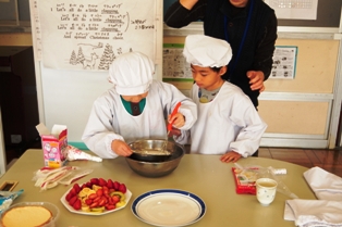 本日にじいろ学級では、ケーキの作成に挑戦しました。