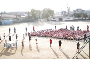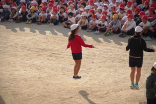 朝マラソン後に、体育員会のメンバーが縄跳びのデモンストレーションを行いました。