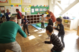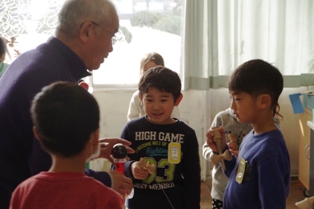 以前にも記事にさせていただきました、「昔遊び」を教えて下さる三葉会の皆様が本日も1年生を訪ねてきて下さいました。