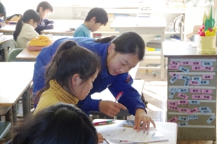その中で、卒業生の中学生が算数教室にお手伝いに来てくれました。