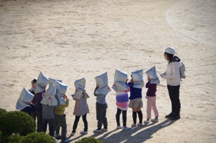 最初の放送時、警報がなると児童達は学年を問わずに素早く机の下に潜り込むことができました。