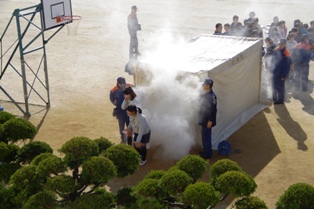避難訓練後に6年生は、「煙体験」も行いました。
