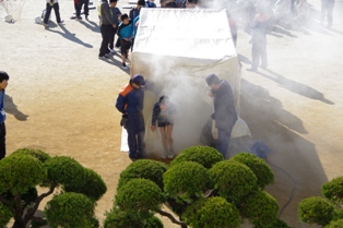 今回はその煙が立ちこめた状態を再現して、中を歩く体験をしました。