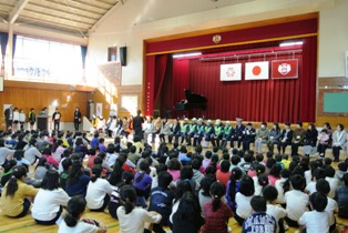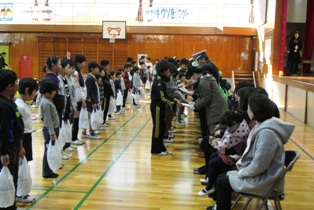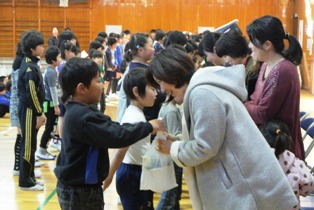 たとえば、朝の登校時。 児童のみんなが登校するときに、道路を渡る際には みんなの安全を守るために立っていて下さる方々がいますね。 雨でも風でも、熱くても寒くても、 毎日みんなを見守ってくれています。 たとえば、週末の朝。 本が大好きなみんなに、教室に本を読みに来て下さる方々がいますね。 毎週バラエティに富んだ、とっても素敵な本を選んできてくれています。 他にも修繕をしていただいたり、ペンキで遊具をカラフル仕上げていただいたり、 樹木を綺麗にそろえていただいたり・・・様々なことでお世話になっています。 以上の様に、彦郷小学校には沢山の方々に助けていただいています。 そんなお世話になっている方々に、感謝の気持ちを伝える 「ありがとうの会」が今日、体育館にて行われました。 会では一人一人に「ありがとう」の気持ちを書いたメッセージ集と花束を代表児童が手渡しました。 また、最後にはその気持ちを込めて、学校全体で歌を送らせていただきました。 彦郷小学校は多くの方々に支えられて毎日教育活動にとりくんでいます。 本当に有難く、感謝でいっぱいです。 今日の会で、本校の児童・職員の感謝の気持ちが少しでも届けられたらと思います。 いつも有り難うございます。