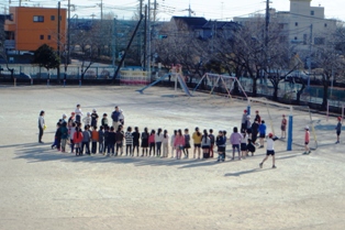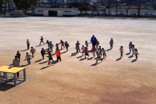 1年生が校庭で「何時?何時?」と聞いているなと思ったら、