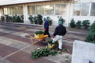 いつも本校の樹木を綺麗に整えて下さっている学校ボランティアの加藤さんや工藤さん小松さんが、今日も手入れをして下さいました。 校舎と体育館の間で日が当たらないところを、綺麗に整えて下さいました。 また、図工室の前のツツジも枯れている部分や余計な木々を取り除いてくれました。 こんな大きい木もありました。 寒い中、有り難うございました!