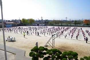 今朝は、体操の隊形への動き方を確認したり軽い運動を行いました。