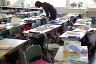 最初の地震では、放送が流れたらすぐに机の下に潜るれました。