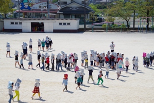 その後は、理科室を避けながら校庭へと避難しました。