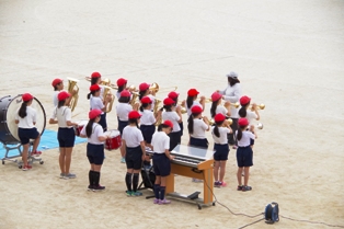 行進の際に流れる曲も、ブラスバンドクラブの児童が演奏しています。