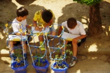二年生が育てている植物の観察を行っていました。 葉っぱの枚数や形、におい等、気になったことを沢山書いていました。 大きく育つと良いですね。