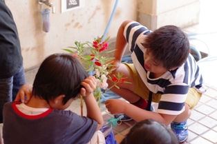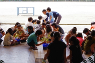 3年生がひまわりに引き続き、鉢で育てている鳳仙花の観察をしていました。 先生に観察のポイントを教えてもらいながらじっくり友達と見ていました。 何か見つけられたでしょうか。