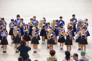 オープニングセレモニーでは、PTAより頂いた新しい衣装をきたブラスバンドクラブ・バトンダンスクラブの児童が練習してきた演奏とダンスを披露してくれました。