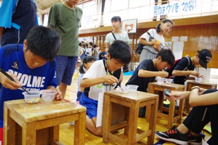 朝早くにも関わらずPTAの方々が大勢来校され調理・設営を行っていました。