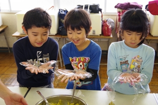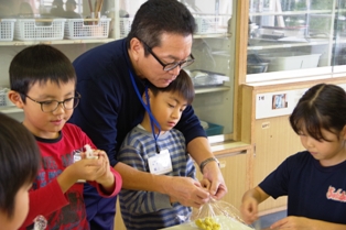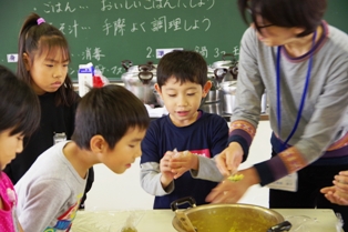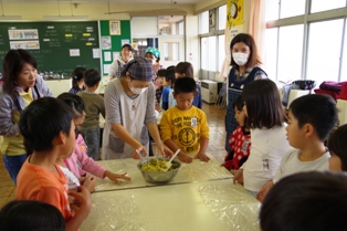過日に洗っていたサツマイモを用いたおいもパーティーを2年生が行っていました。 早くからPTAの方々が家庭科室で下準備をしてくれました。 大きいお芋の皮をむいて、小さくカットして、ぐつぐつ煮て・・・ 有り難うございます。 その後児童達も合流し、教えてもらいながら丸く握っていきました。 友達とくらべっこしていましたね。 上手く丸く仕上げられたでしょうか。