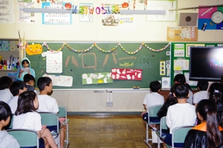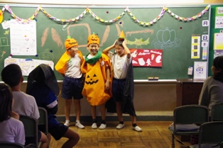 児童達は少し照れつつも笑顔で思い思いの仮装をしていました。