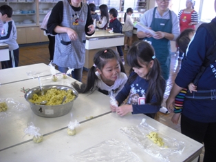 今日は1年生のおいもパーティーが行われました。 早い時間から何人もの保護者の方が家庭科室でお芋の準備をしてくださいました。 ご協力有り難うございます。 児童達はうきうきで教室の準備をしていましたね。 そして茶巾作りはみんな楽しく教えてもらいながら綺麗に作っていました。 準備に、そしておいもパーティーに御協力いただき有り難うございました。 素敵な時間を過ごすことがで来ましたね♪