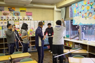 さすまたの使い方から避難の手順など、実際に動きながらの研修でした。