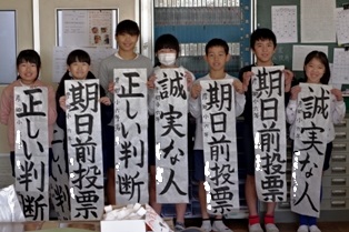 明るい選挙啓発運動にも習字で参加しています。 冬休みからじっくりと頑張っていた児童達の文字は力強く綺麗ですね! お見事です!