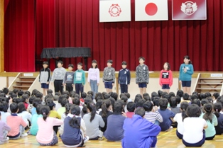 今朝は、全校児童の前で「委員会活動の発表」が行われました。 放送委員の発表では、体育館の放送機器を使って「先生は誰でしょうクイズ」がおこなわれました。 関西のイントネーションで話した先生は誰か。 みんな楽しく考えていましたね。