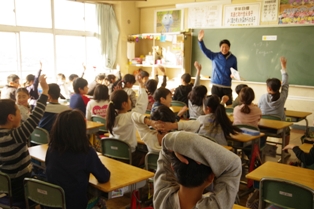 彦郷小学校では「EEタイム」の他にもお昼の放送の「English Broadcast」や「ALTの英語授業」など、英語活動を行っています。
