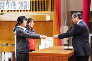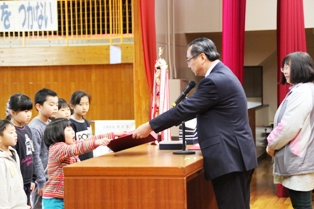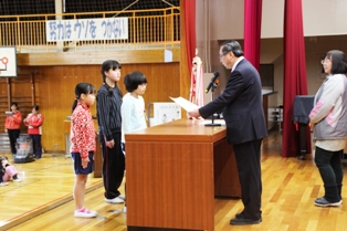 それらの賞状を児童に手渡す表彰が体育館で行われました。