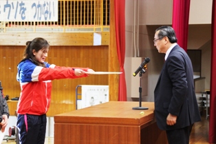 また、過日に行われた市民マラソンで入賞した先生の表彰もありました。