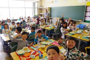 給食は毎日「給食センター」の方々が皆さんの健康を考えて、栄養素・カロリーを計算してつくってくれています。