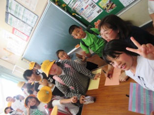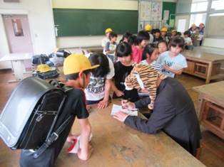 お話やサイン(?)をもらいたくて、多くの児童が先生方に集まりました。