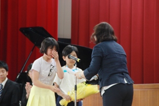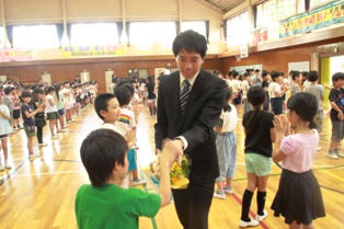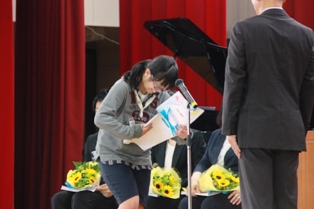 式では代表児童が手紙と花束を渡していました。