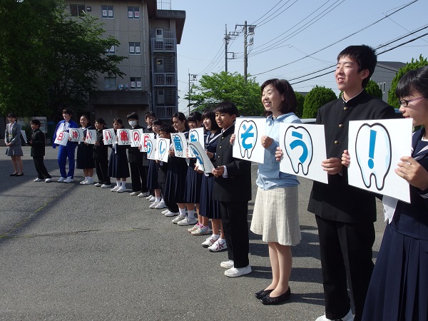 保健委員会では、18日を良い歯の日に設定して、虫歯を治そうというキャンペーンを展開しています。朝のあいさつ運動にあわせて、保健委員会の生徒が元気よく「18日は良い歯の日、虫歯を治しましょう」とPR活動を行いました。この機会に虫歯がある人は治療してしまいましょう。