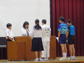 また、昨年、3学期のあいさつ運動に貢献した部活動を表彰しました。