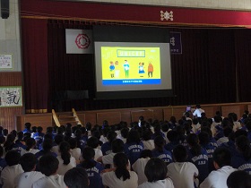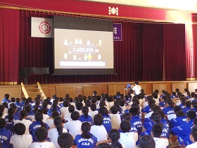 最後に、生徒会がユニセフについての説明をしました。みんなの幸せを願って生活することは自分の幸せにもつながります。それぞれが自分のできる範囲で貢献していけたらよいですね。