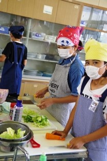 6年生が家庭科の授業で調理実習をしていました。