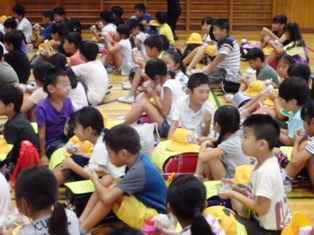今日は地震時の動きと共に、防災訓練の一環で「備蓄食料」のごはんを食べました。