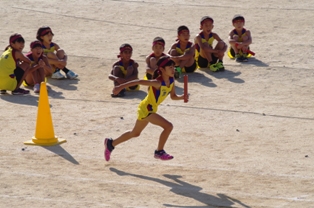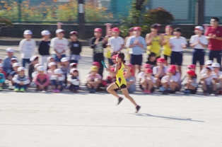 流れるようなバトンパスをみた低学年からは拍手をする様子も見られました。
