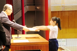 表彰状の授与の際も、大きな声の返事とピンっと伸びた背筋が素晴らしかったです。