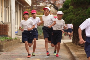 普段から朝マラソンで体力をつけている彦郷の児童は持久走大会でも全力での走りをします。