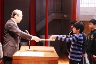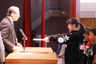 今日は終業式と併せて、今学期に活躍した児童達の表彰が行われました。