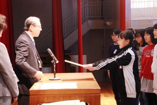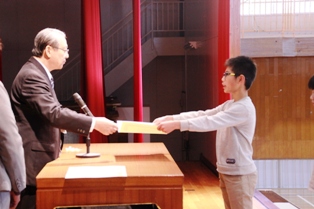 壇上では大きな声で返事をして堂々と受け取っていました。