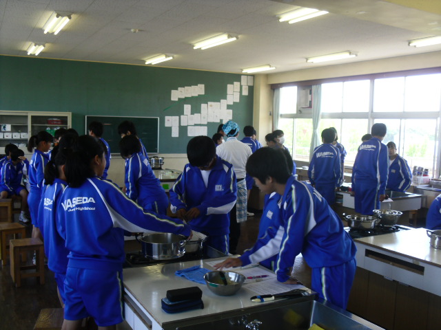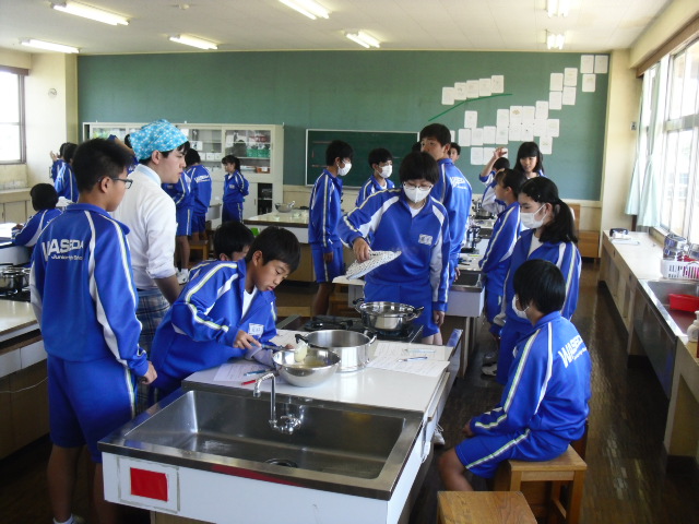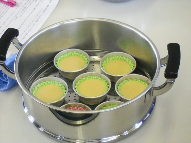 調理実習ではありません。炭酸水素ナトリウムの分解の実験です。結論として蒸しパンを作っていました。