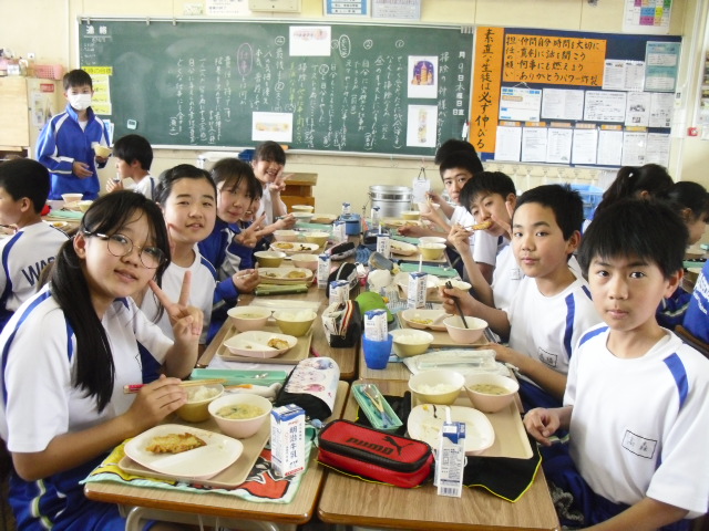 本日の給食の様子です。今日は給食の後、諸活動なしで下校になりますので、いつも以上に楽しそうに(?)食べていたような気がします。